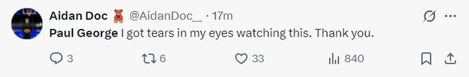 美国球迷:看到保罗-乔治打出这样的表现我的眼眶里都是泪水,谢谢你。