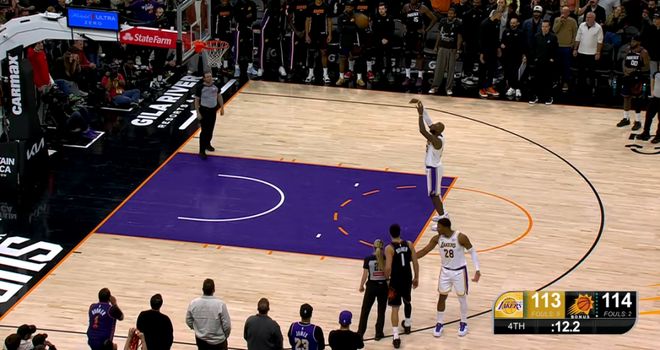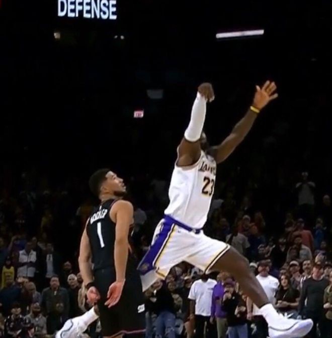 詹姆斯在面对太阳的比赛里引起了巨大的争议,最后时刻他通过劈叉投篮造犯规,再加上裁判驱逐了对手球员狄龙布鲁克斯,连得4个罚球完成了罚球绝杀,全场比赛湖人的罚球数43:25领先对手整整18次。